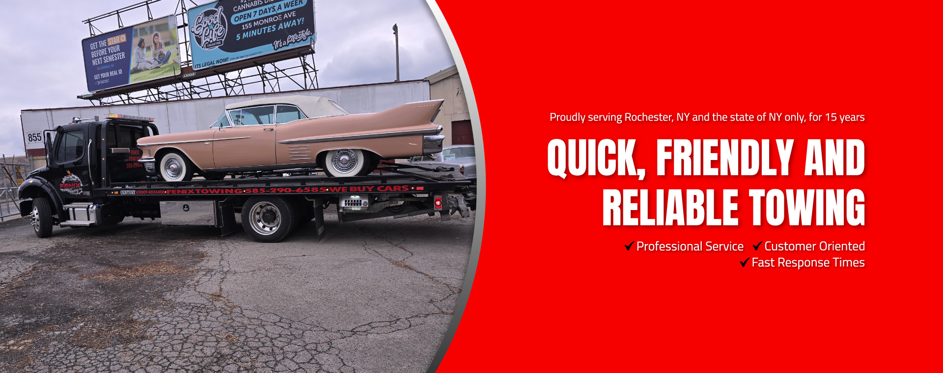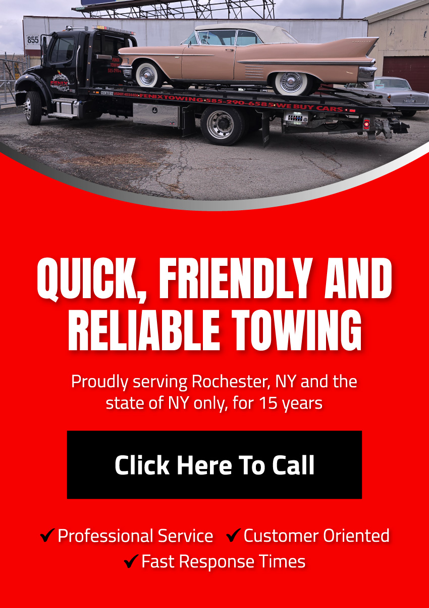 Welcome to Fenix Towing Company, your trusted partner in reliable and efficient towing services in Rochester, NY and the state of New York only. At Fenix, we specialize in light and medium-duty towing, ensuring a swift and secure transport for your vehicles. Our dedicated team goes beyond towing, offering a range of essential services, including battery jumpstarts to get you back on the road quickly. Additionally, Fenix Towing provides expert private property impounding solutions, delivering peace of mind to property owners. Count on Fenix for unparalleled car towing expertise and comprehensive assistance in Rochester.